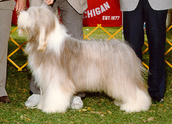 Alfie was an extraordinary dog with an exceptional pedigree. Brenda White allowed him to come to Canada in 1989 a few months after his dam, Cassie, had won Crufts. We were so thrilled to have him. He settled right in and at his second show in Canada won a Herding Group 1. He went onto win BISS under respected judge, Jim Shannon, in 1990. When we brought our son, Jarett, home as a baby, Alfie became his guardian and protector. Jarett learned to walk by holding onto Alf’s hair. Sadly, Alfie went to the Rainbow Bridge before his time due to a brain tumour. |