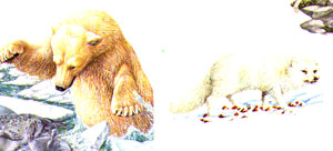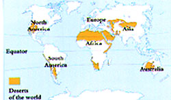 Deserts are the driest places in the world, with less than 25 cm ( 10 in ) of rain per year, They cover about 14 percent of the land. In some deserts, there may be no rain for many years and then, during one great storm, large areas may be flooded. Some deserts, such as the Sahara in Africa, are hot in the day but often cold at night. Other deserts, such as the Gobi in China and Mongolia, have bitterly cold winters. Desert Facts The world's largest hot desert is the Sahara. It stretches across North Africa from the Atlantic Ocean to the Red Sea and covers about 9 million sq km ( over 3 million sq miles ). The highest air temperature, 58 degrees C (136.4 degrees F ), was recorded in Libya, in the Sahara. Cave paintings from the central Sahara show that, about 10,000 years ago, the Sahara was much wetter than today. Grass covered most of the land. But the climate changed and, by 5,000 years ago, the region had become a desert. The world's largest cold desert is the Antarctica Desert. It is over 14 million sq km in size ( over 5 million sq miles). Poles and Tundra Facts The land in Antarctica and Greenland is covered by two great ice sheets which never melt. Their cold, windswept polar climate is the harshest in the world. Around the ice-covered areas of the Arctic lies a region called the tundra. Here, the ice and snow melt during the short Summer. No trees grow in the Tundra itself, but it merges with the evergreen forests of North America and Siberia in the USSR. These northern forests consist of coniferous trees, such as fir, larch, pine and spruce, which can survive the bitterly cold winters. The lowest known air temperature, -89.2 degrees C ( -128.6 degrees F ) was recorded at the Soviet Vostok research station in Antarctica in 1983. In parts of Antarctica, the ice is 4,800 m ( 15,748 ft ) thick. In the Arctic, about 12,000 icebergs break away every year from the glaciers whch flow down to the sea from the Greeland ice cap. In the Arctic, the Sun never sets in the Summer and it is daylight all the time. In Winter, the Sun never rises and the days are cold and dark. Tundra Fact The word tundra is Finnish and it means treeless plain. |