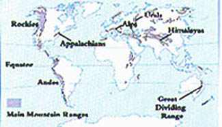 The mountains of the world have been pushed up from the surface of the Earth in different ways. Some mountains are volcanoes. Some are dome mountains, pushed up by rising magma that does not reach the surface. Some mountains grew when rocks were squeezed up into great folds, while others are blocks of land pushed by the movements of the Earth's plates. The world's greatest mountain ranges were formed by sideways pressure, caused when plates pushed against each other. The rocks that make up some of the world's highest peaks were formed on the ocean floor. Over thousands of years, these rocks were squeezed up into great folds. Mountain Facts The world's highest peak on land is Mount Everest in the Himalayas. It is 8,850.1728 m ( 29,036 ft ) tall. The world's highest mountain, from its base on the ocean floor, is Mauna Kea, on Hawaii. It is 10,203 m high or ( 33,474 ft ) but only 4,205 m ( 13,796 ft ) is above sea level. The biggest rift valley runs through East Africa into southwest Asia and is 5,600 km ( 3,500 miles ) long. |
